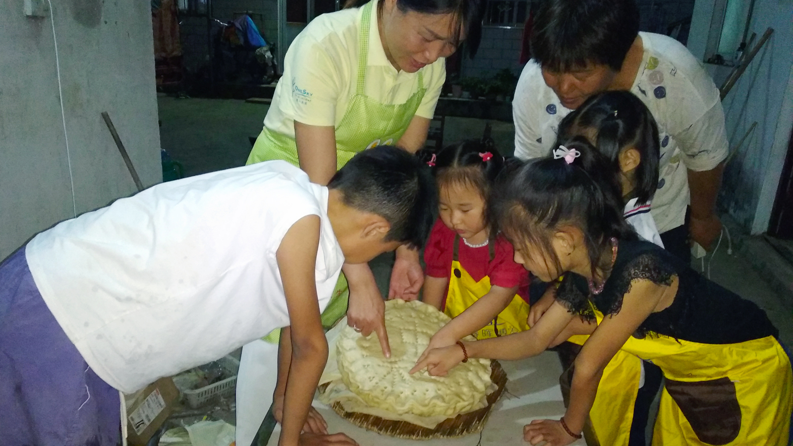 As the steaming time was up, a big round mooncake appeared in front of all the children. “Wow, is this a moon cake?” they asked all at once with a surprise.